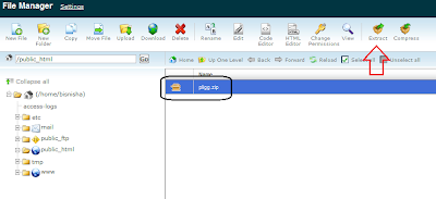 - Nanti anda akan kembali ke File Manager. Kemudian Extract Filenya dengan cara klik Extract seperti di bawah ini.